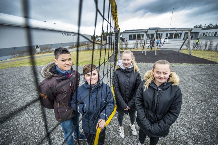 – Veldig kjekt å slippe matpakka, synes niendeklassingene Niklas S. Hansen og Linnea Harneshaug og Susanna Bergtun og Nicolai Myklebust som går i åttende. Dette er ungdommer som er stolte av heimplassen sin som i 2020 blir den nordligste bydelen i Ålesund kommune.